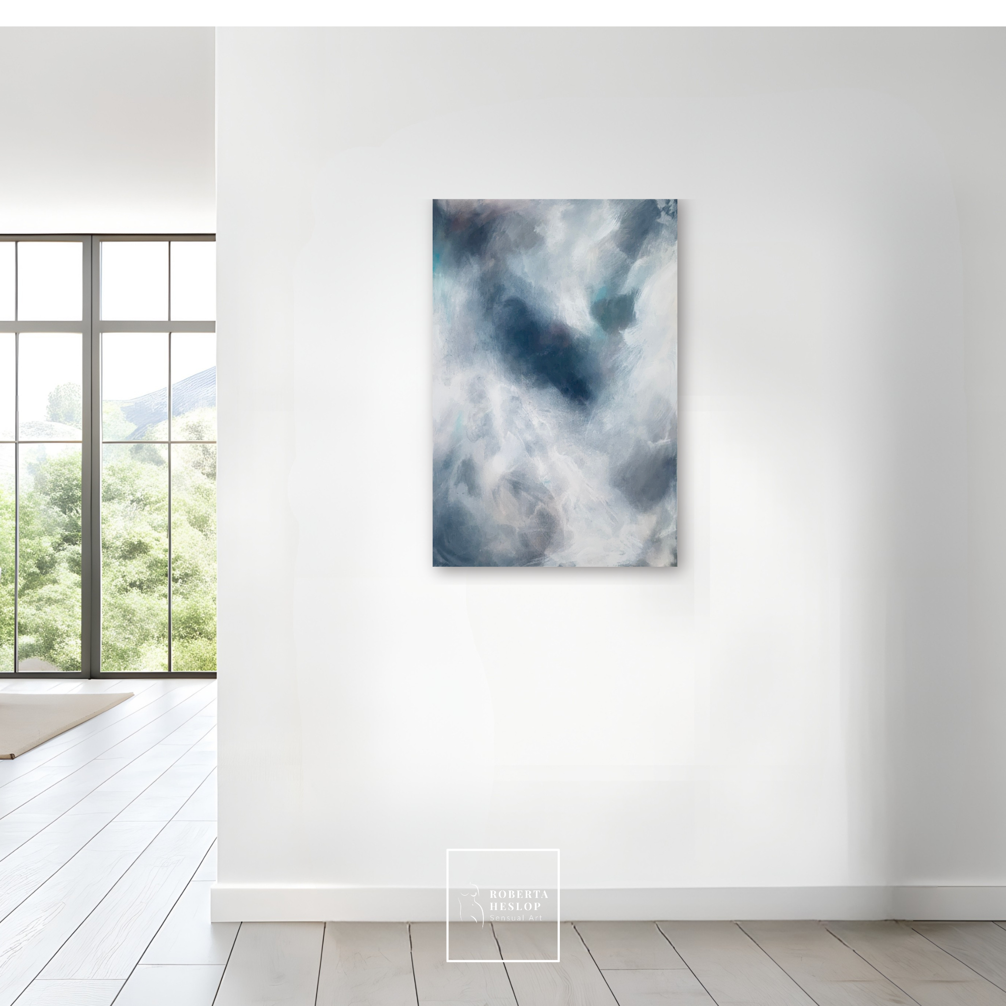 The brushwork is intentional yet flowing — creating movement that never feels urgent. It's the visual equivalent of exhaling. Of letting your shoulders drop. Of remembering that you don't always have to be in motion to be moving forward.